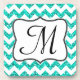Modern Teal Glitter Chevron Zig Zag Stripe Fabric Print Pattern Monogram Initial Drink Coaster Personalised