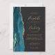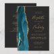 Modern Teal Gold Agate Dark QR Code Wedding Invitation