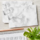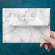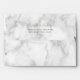 The inside of this elegant modern wedding invitation envelope features a teal blue watercolor agate design trimmed with faux gold glitter. Customise the back flap with the names of the bride and groom in gold-coloured handwriting script and return address in black copperplate font on a grey and white marble background.