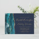 Modern Teal Gold Agate Navy Blue Wedding Invitation