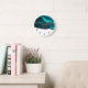 Modern Teal & Gold Agate with White Abstract Round Clock