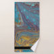 Modern Teal Gold Purple Marble Agate Monogram Name Bath Towel Set