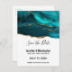 Save the date wedding postcard with an abstract style. Illustration of teal agate stone with layers of varying shades.