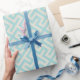 Modern teal greek key geometric patterns monogram wrapping paper
