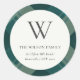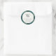 Modern Teal Green Blue Plaid Pattern Monogram Classic Round Sticker