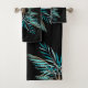 Modern Teal Palm Leaves Beach Bathroom Black Bath Towel Set