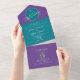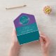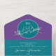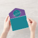 Celebrate modern love with our striking and bold teal and purple all-in-one wedding invitation, designed to stand out. This sleek, minimalist design features a hand-drawn monogram at the top, paired with a breathtaking photo of the couple. Combining both style and convenience, the invitation includes a personalised website link and QR code for easy RSVPs and quick access to additional details. No envelope needed—simply add your return address to the top flap, seal it, and send with love. Let your special day be as unforgettable and chic as this beautiful design!