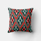 Modern teal red black Ikat Tribal Pattern 1a Cushion