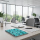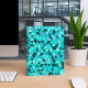This eye-catching notebook features a modern geometric pattern composed of a dynamic mosaic of triangles. The design is rendered in a vibrant palette of teal, turquoise, and deep blue shades, creating a cool and energetic look. This stylish, abstract pattern is perfect for anyone who loves bold color and contemporary aesthetics. Use this notebook for work, school, journaling, or as a chic accessory to brighten up your desk space.