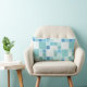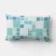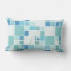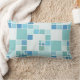 A pillow with a geometric tile design in blue, teal, turquoise and green. Beautiful for a modern interior or a beach house.