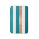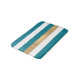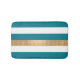 Chic bath mat done in a contemporary bold striped pattern, in teal, white and gold tone. Matching bathroom products are available. Comes in three sizes.