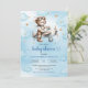 Modern Teddy Bear Pilot Blue Brown Boy Shower Invitation