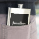 Calligraphy Script Name Elegant Modern Minimalist Simple Template Barware & Bar Tools Monogram Name Black, White And Silver Classic Flask.