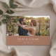 Custom-designed wedding guest book featuring modern rustic terracotta colour design with personalised wedding photo.