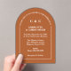 Set the tone for your modern fall wedding with these stunning Modern Terracotta Burnt Orange Acrylic Invitations. Featuring a sleek arched shape and a rich autumn-inspired colour palette, these invitations blend elegance with contemporary design. They offer a sophisticated and lasting impression—perfect for a chic fall celebration. These invitations are a part of a wedding collection with coordinating items available. We encourage you to explore the full set to create a perfectly matched celebration.