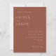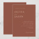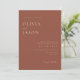 Modern wedding invitation with minimal typography design in terracotta colour. Easily personalise with all of your information for custom wedding invitations,