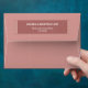 Our wedding invitation envelope features modern vintage calligraphy on a terracotta background with a peach and terracotta pattern design on the sides and a yellow and pink flower lining the inside of the envelope. Add your address and the address of your guests for easy mailing. Please shop our store for coordinating items.