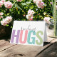 A simple modern card packed with kindness and affection, this design has "sending hugs" text in a combination of bold and handwritten script on the front of the card. The multi-coloured text on a clean white background adds to the contemporary look of the card. Inside text is a thoughtful expression that can be ordered as written or personalised with your own desired inside text. This card is not only a great choice for special occasions like Valentine’s Day, it is also a perfect choice for sending a thoughtful card to someone who is ill, needs a pick-me-up, or perhaps a family member or friend who is living alone or in a nursing home. So many possibilities to brighten someone's day with this simple card.