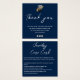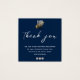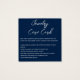 This after-purchase information card is on a navy blue background with white text. A combination of modern cursive font and an easy to read all caps font.