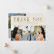 Modern and minimal graduation announcement photo card featuring 3 photos on the front and 1 on the back. The text at the top says "thank you." Add the graduate's name, information, and message to personalize this card. Cream color.