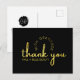 Modern Thank You Script Gold Glitter Black Custom Postcard