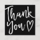 Modern thank you script order minimal black white square business card