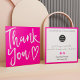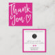 Modern minimalist and stylish white and hot pink business order thank you brush script font with a heart. Add your social media. With an elegant signature script font, all the colours are editable , add your logo.