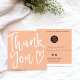 Modern minimalist and stylish white and peach business order thank you brush script font with a heart. Add your social media. With an elegant signature script font, all the colours are editable , add your logo.