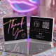 Modern minimalist and stylish black and neon rainbow multi color style script business order thank you brush script font with a heart. Add your social media, and qr code. With an elegant signature script font, all the colors are editable , add your logo.