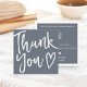 Modern minimalist and stylish white and dusty blue business order thank you brush script font with a heart. Add your social media. With an elegant signature script font, all the colours are editable , add your logo.