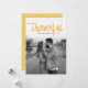 Modern Thankful Yellow Watercolor Script Photo Holiday Card