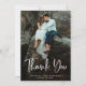 Modern Thanks | White Script and Wedding Photo Thank You Card