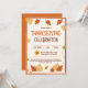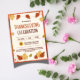 This invitation design highlights rustic orange, brown, and yellow hues, with charming leaf illustrations framing the details. Customisable text fields let you easily update the date, time, address, and party details to fit your event.