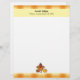 These modern and colourful custom white letterhead features a cute turkey, pumpkin, berries at the bottom, Name and address on the top and yellow orange gingham seamless pattern and cream border on cream background. These quality letterheads add a personal touch to correspondence such as letters of congratulations, thank you notes, referrals or racommendations.