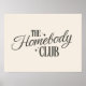 Modern "The Homebody Club" Neutral Beige Typography Wall Art Poster Print. A minimalistic and aesthetic typography art print, designed with black text, stars, and a retro aesthetic. Perfect for decorating a home living space, apartment, or college dorm room.