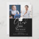 A stylish graduation party invitation featuring two special photos and stylish typography on a black background. Designed by Thisisnotme©