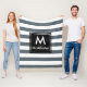 Modern Thick White Stripes Black Square Monogram Fleece Blanket