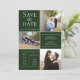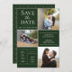 Announce your wedding day with this Modern Three Photo Collage Save the Date Announcement. Save the Date design features a modern and minimalist layout and three photo placements for the happy couple. Add a photos and wedding details to customise. Background design features a simple geometric pattern.