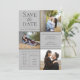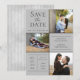Announce your wedding day with this Modern Three Photo Collage Save the Date Announcement. Save the Date design features a modern and minimalist layout and three photo placements for the happy couple. Add a photos and wedding details to customise. Background design features a subtle grey vintage striped pattern which you can keep or can be changed.