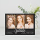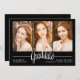 A crisp, clean, modern design features spaces for three large photos on the front and one smaller photo on the back in classic black and white. A contemporary look that's perfect for your young graduate. Shown as a graduation party invitation, all text lines can be customised to easily change to an announcement instead.