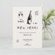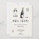 Celebrate New Year with a stunning handwriting black and white modern bold typography invitation with a champaign bottle and glasses to toast to the new year. Change time, address, number and name.