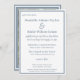 Large weddings are back. Your wedding invitation features today's dusty blue, a couple's photo, the bridal couple issuing the invite, modern capitalisation AND identifying information. First names work for intimate wedding ceremonies, but identification is needed for the extended family and parents' friends of sizeable events. This dusty blue and white wedding invitation features the modern touches while stressing the elegance of bygone years. It is simple to substitute all your information for our placeholders - editing each line and word if you choose. Contrasting modern fonts are in a deep dusty blue against a white background. A wide band of blue frames the edges of the white card. Notice at the bottom you can add all the parents' names as they prefer to be styled. On the back, dusty blue becomes the background framed in white. Here is a great space to add your favourite couple photo, or simply leave the dusty blue, double framed background. If you use a photo, we suggest adding your familiar names in the script font at the bottom or delete photo and placeholder names. Wedding invitations have evolved from "one right way" tradition to "have it your way" freedom. Staying with the nuptial times, this dusty blue and white wedding invite offers both traditional touches and modern updates which you are encouraged to transform with your own creativity.