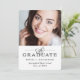 This elegant, updated black and white version of a classic graduation party invitation features modern calligraphy and typography on a white background, with a prominent spot for the photo of the graduate. All of your party information goes onto the back.