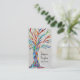 This unique business card is decorated with a Tree of Life design on a grey background.