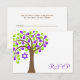A chic and stylish Tree of Life themed Bat Mitzvah RSVP card. Shown in purple, green and brown.