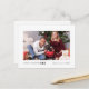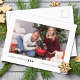 Simple and modern holiday postcard. Design features one large photo, san serif font, black holiday tree image on white card. Affordable way to send joyous holidays to family and friends.