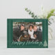 Modern Tree Snow Happy Holidays Family Photo Green Holiday Card