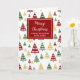 Merry Christmas for daughter and her family card with modern red, yellow and green christmas trees pattern.