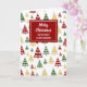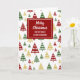 Merry Christmas for niece and her husband card with modern red, gold and green christmas trees pattern.