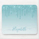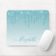 Modern Elegant Fashionable and Trendy Aqua Blue Glitter Mouse Pad personalised with your Name. Stylish Script. Dripping Glitter with sparkles.
